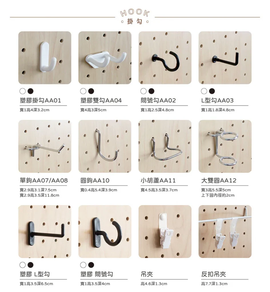 在挑選配件時,需確認洞洞板的孔徑和間距,以確保配件能夠完美匹配。同時,配件的顏色和材質也是考量因素,選擇與洞洞板相配的款式能提升整體美觀度。
