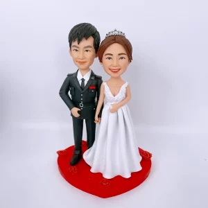 公仔的姿態並非僵硬的站立,而是自然地執手相伴。這個簡單的動作,卻蘊含了「攜手一生、風雨同路」的深刻寓意。它無聲地訴說著兩人之間的情感連結與相互依靠,讓整件作品充滿了溫暖的敘事感。愛的舞台:鮮紅心形地台