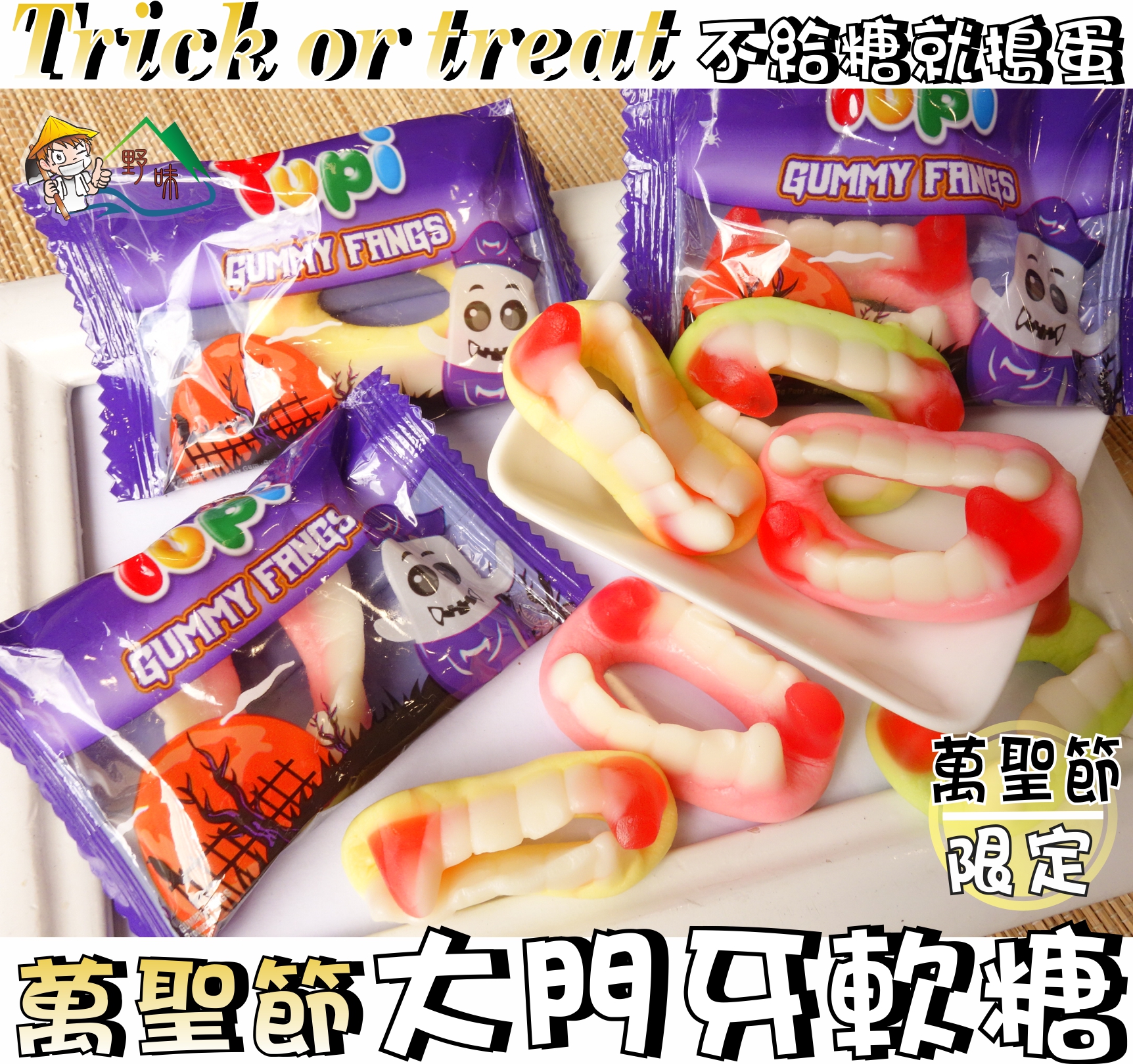 Yupi 橡皮糖: 除了常見的披薩造型,他們的「牙齒糖」也非常適合萬聖節,拿來當作吸血鬼的道具一流!