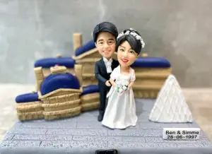 - 象徵性的一步: 底座上那一道淺藍色的台階,不僅打破了純白的單調,更具有深刻的象徵意義——它代表著新人共同邁出的、踏入婚姻殿堂的「第一步」,意義非凡。