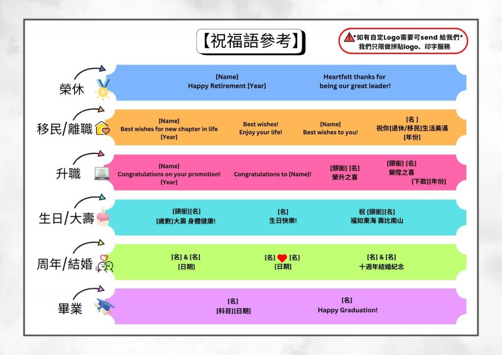 - 刻字紀念 : 於底座刻上名字、日期或祝福語,使禮品更具專屬意義