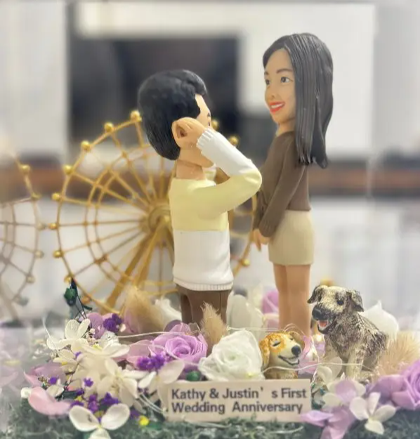 其次,人像公仔的定制設計使得每個展示盒都獨一無二。顧客可以提供參考圖片,讓設計師根據收禮人的外貌或特點創作出個性化的公仔,這樣的設計不僅讓展示盒更具特色,還能展現對收禮人的重視和關心。