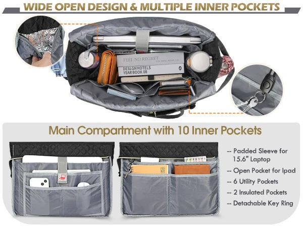 Insulated teacher totes are a game-changer for educators who need to keep their lunch and drinks at the right temperature while carrying books and papers. The Rainsmore Teacher Tote Bag is a great example, featuring insulation, a large capacity to fit a 15.6-inch laptop, and extra pockets for organization.