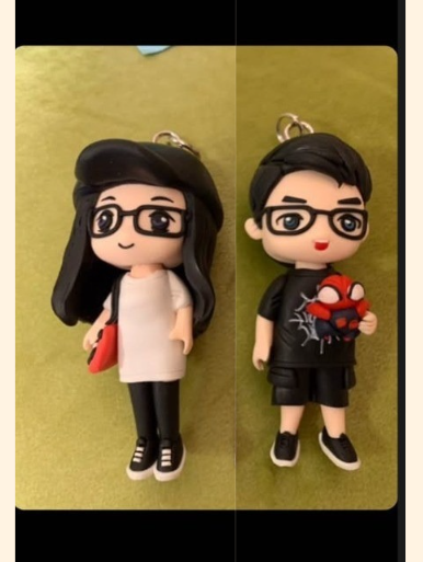 - 眼鏡: 案例標題【眼鏡情侶】點明了核心特徵。公仔精準地抓住了兩人共同的「眼鏡」身份標籤,這是超越五官細節的、更強烈的視覺記憶點。
