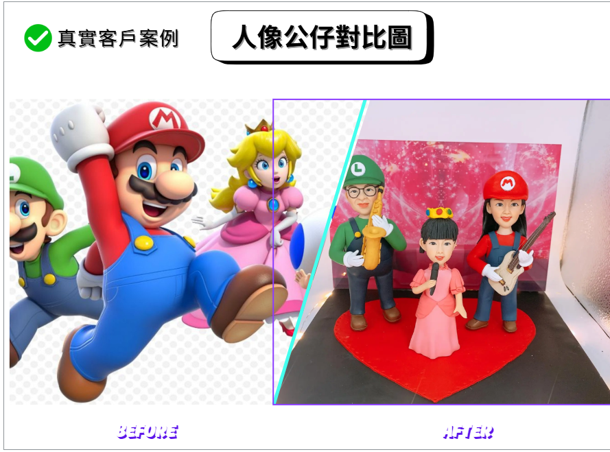 真實玩家的「通關影片」!這個「真實客戶案例」就是最好的遊戲實況!它證明了我們不只是瑪利歐的粉絲,更是能讀懂每個家庭「遊戲目標」的超強夥伴。我們知道你想要的,不只是一個公仔,而是一座可以隨時「讀檔」快樂回憶的紀念碑。