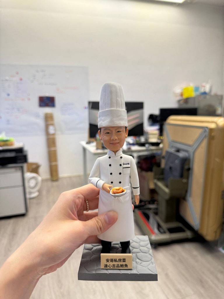 CuteFigure creates 100% custom, hand-sculpted 3D figurines based entirely on your photos. You can have them craft a miniature version of your chef wearing their exact uniform—complete with their name embroidered on the jacket! Want to make it even more special? Have the figurine holding their favorite Japanese chef’s knife in one hand and a miniature version of their signature dish in the other.