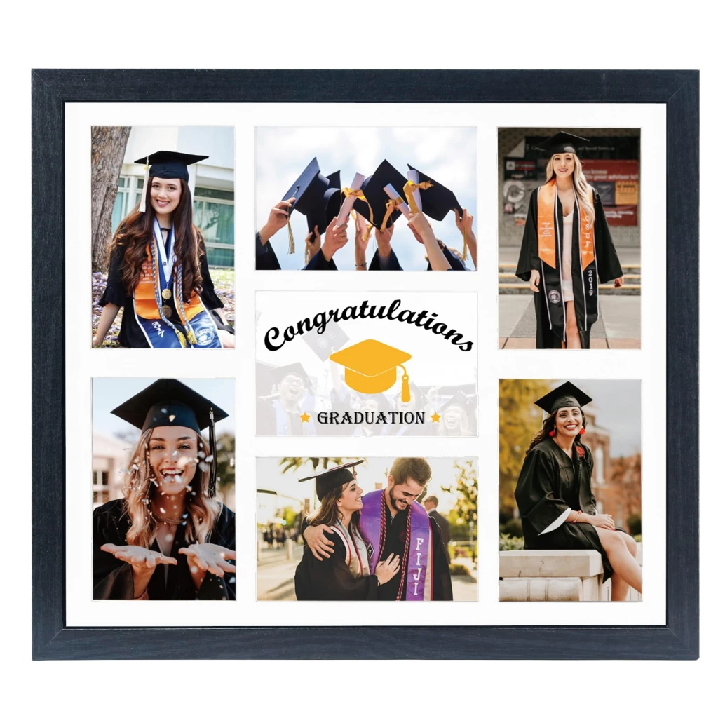 Montage frames tell the story of a graduate’s school years. Fill them with photos, certificates, and special moments. These frames are both beautiful and nostalgic.