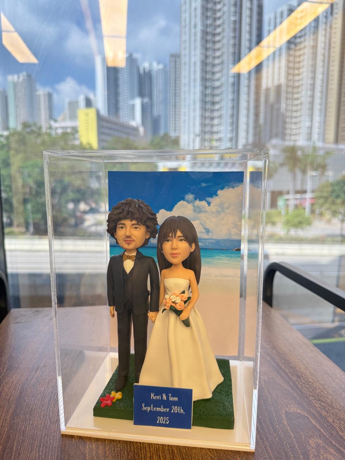 【海風見證】沙灘婚禮新人公仔|透明防塵盒 × 清新藍天背板