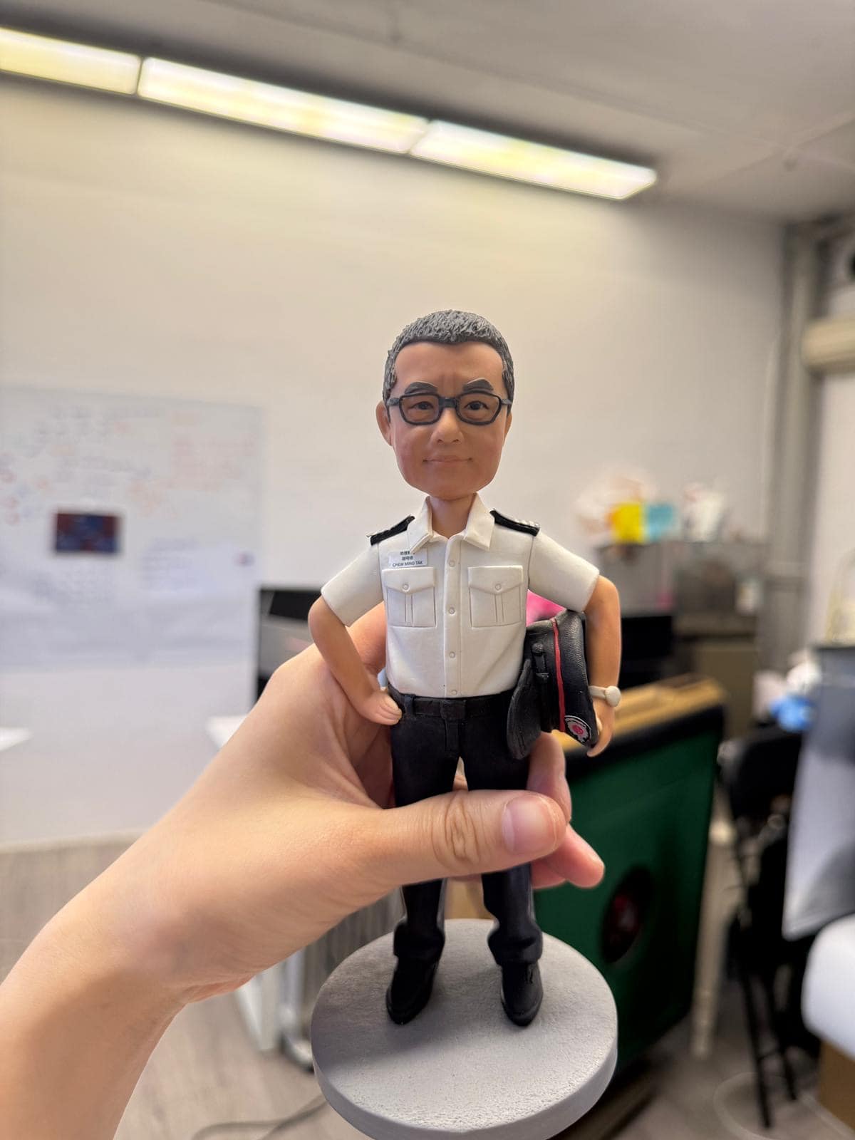 訂製的人像公仔榮休禮物,把救護員多年來的專業風采與奉獻濃縮其中。公仔身穿整潔制服,以自信笑容展現守護生命的精神,背景的醫院亦見證了他無數日夜的付出。
