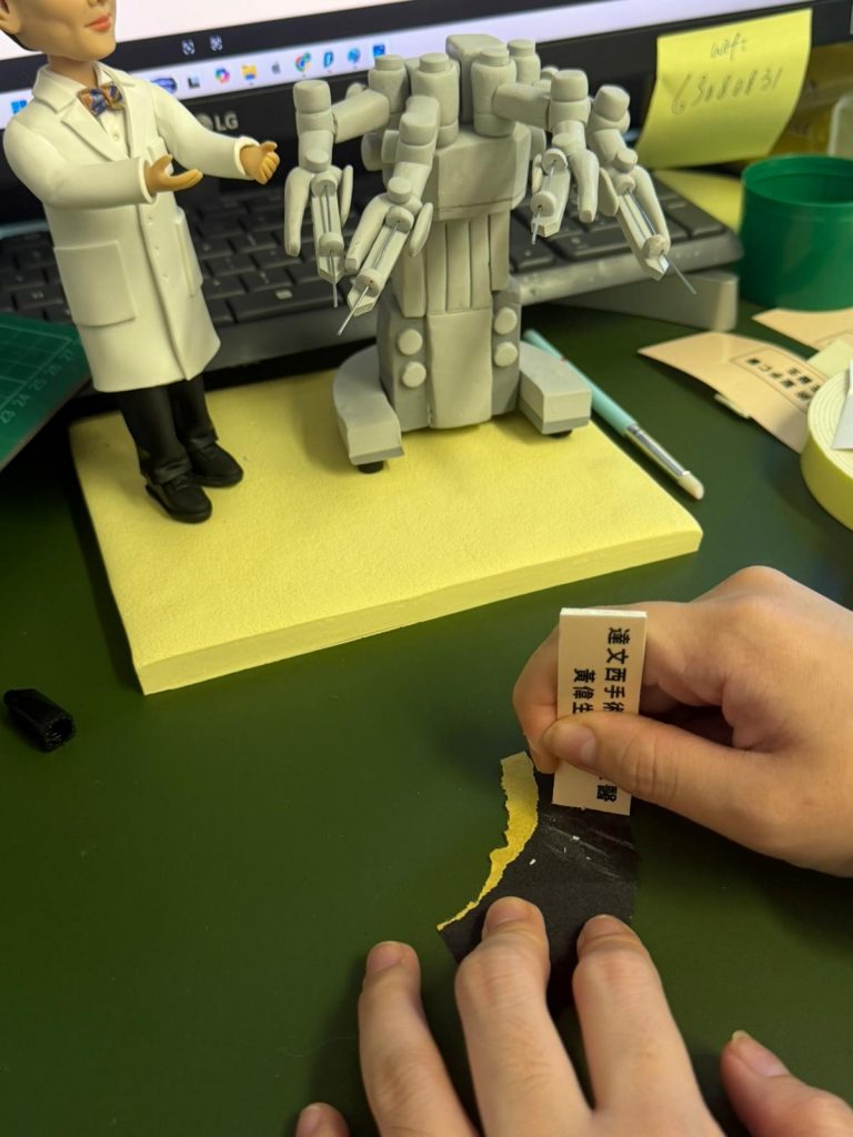 這張照片所記錄的,不只是一個公仔的製作過程,更是一份對專業精神的崇高敬意。當醫生客人收到這份獨一無二的禮物時,他所擁有的,不僅是一個自己的Q版人偶和一台微縮版的達文西機械臂,更是一份被深刻理解、被用心呈現的職業榮耀。這,就是「一份滿意嘅公仔」所能承載的,最厚重的價值。
