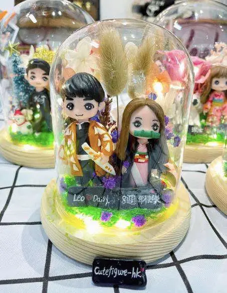 結合「專屬公仔」與「永生花藝」,將你們最美的瞬間,封存在時光玻璃罩內。